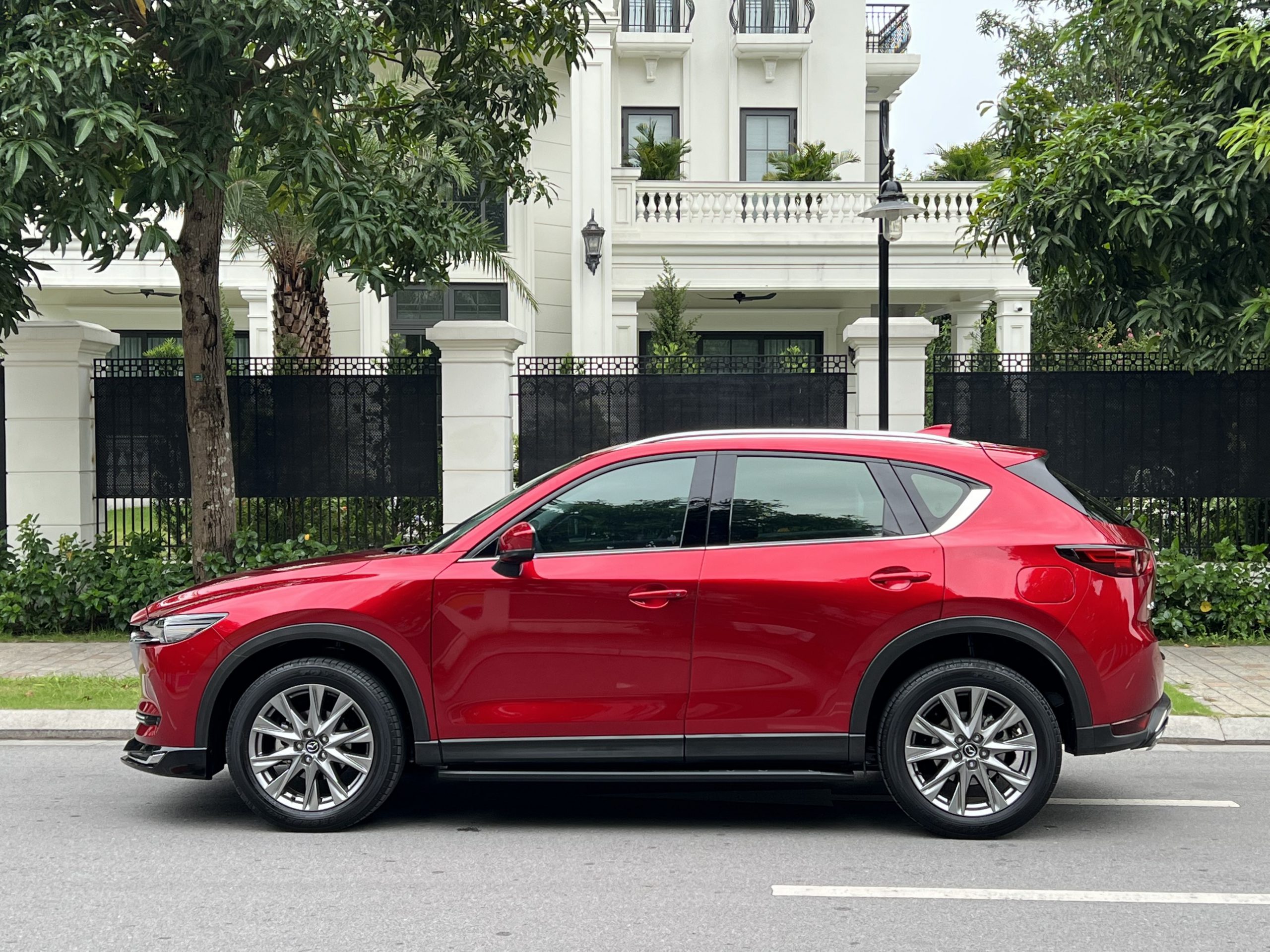 Nhìn từ thân xe, CX-5 2022 vẫn cực kỳ lôi cuốn với kiểu dáng “báo vồ mồi” đặc trưng của ngôn ngữ thiết kế KODO. Trụ B và trụ C của xe cũng được sơn đen để làm tăng tính liền lạc và thống nhất cho khu vực khung kính. Gương chiếu hậu của CX-5 vẫn tiếp tục được đặt tách biệt ở phần thân thay vì góc trụ A như truyền thống, giúp tăng tầm quan sát cho người lái và tạo ấn tượng hiện đại cho xe. Tất cả các phiên bản đều được trang bị tiêu chuẩn gương hậu chỉnh và gập điện. Tuy nhiên, do chỉ thuộc thế hệ 6.5G nên CX5 2022 vẫn chưa có chức năng gập gương tự động khi khoá cửa như hai “hậu bối” là Mazda3 và CX-30.