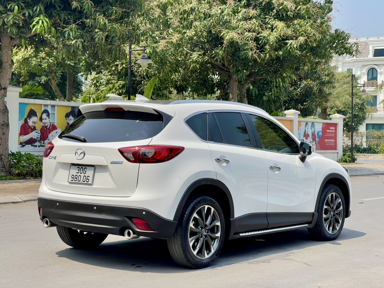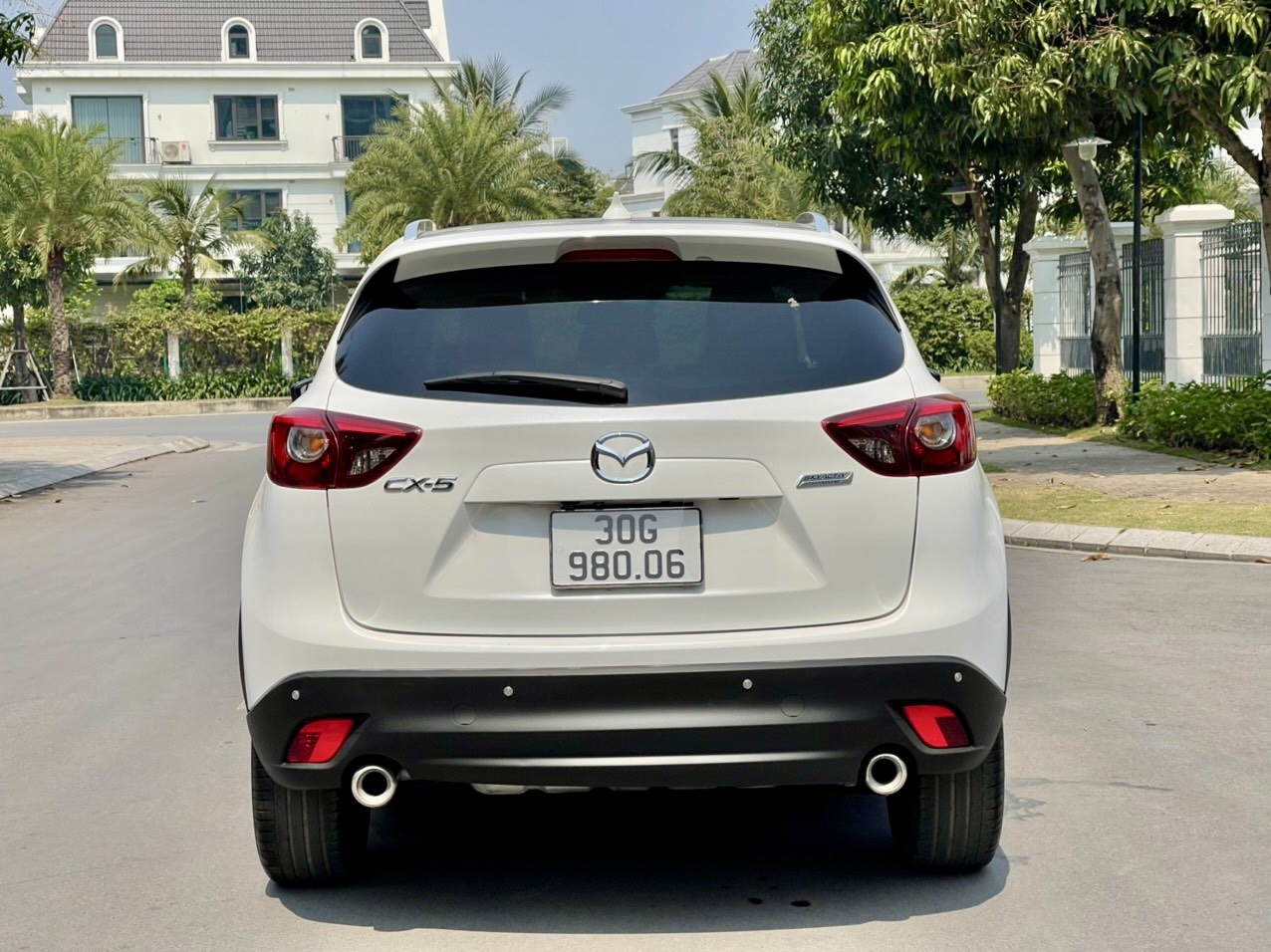Phần đuôi xe của bản Mazda CX5 2016 facelift chỉ có đôi chút khác biệt ở cụm đèn hậu, còn lại đuôi lướt gió, ăn-ten vây cá mập, cản sau bằng nhựa cứng to bản và cặp ống xả kép đều được “giữ nguyên trạng”, một tổng thể thiết kế vốn đã rất quen thuộc trên đường phố Việt Nam.