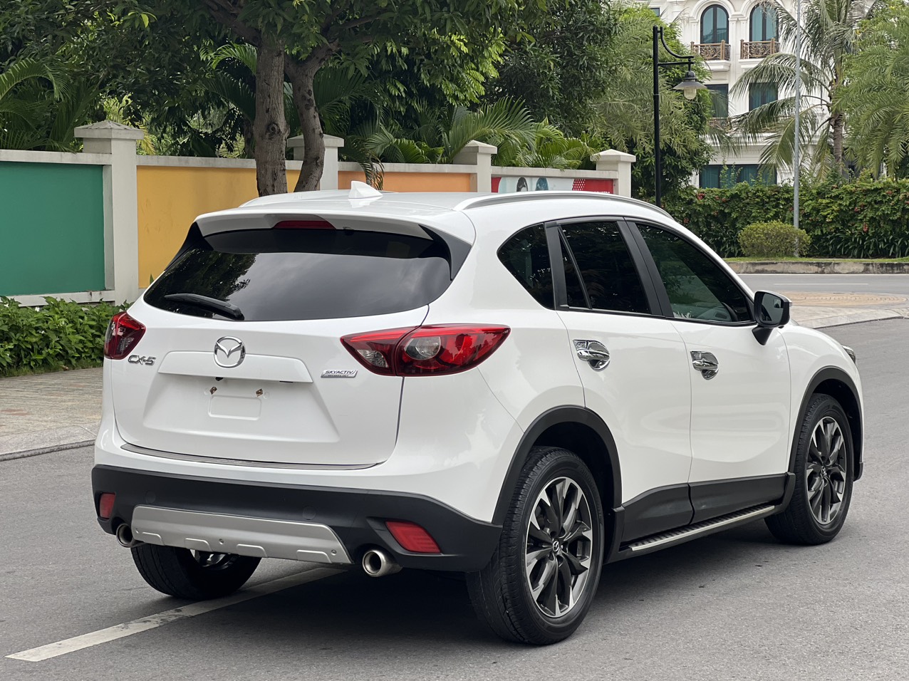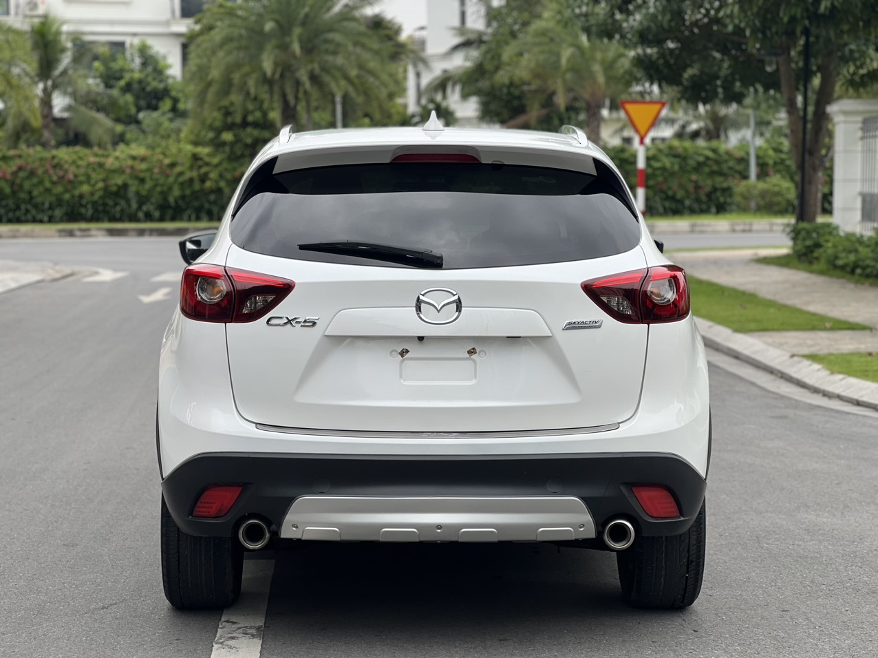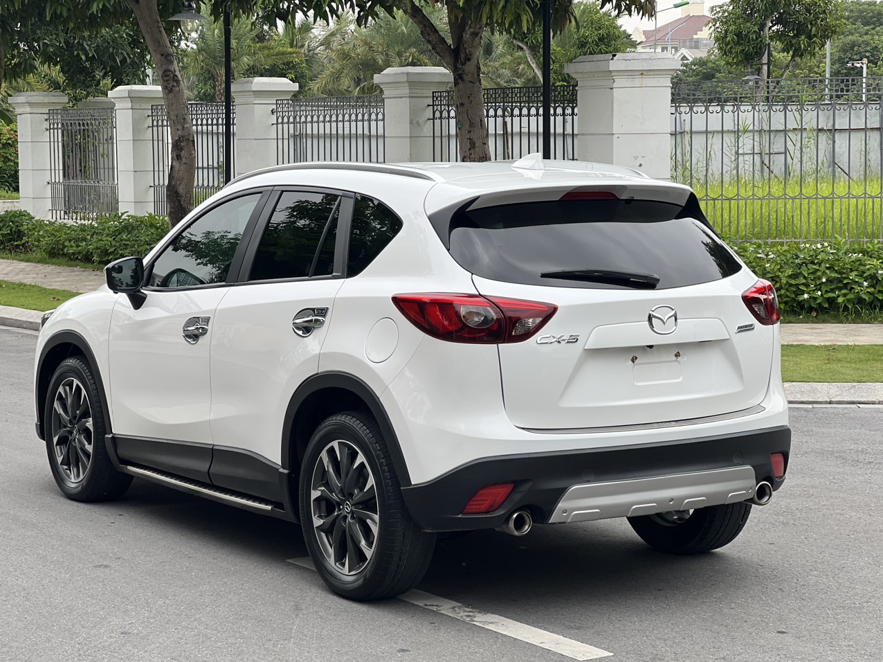 Phần đuôi xe của bản Mazda CX5 2016 facelift chỉ có đôi chút khác biệt ở cụm đèn hậu, còn lại đuôi lướt gió, ăn-ten vây cá mập, cản sau bằng nhựa cứng to bản và cặp ống xả kép đều được “giữ nguyên trạng”, một tổng thể thiết kế vốn đã rất quen thuộc trên đường phố Việt Nam.