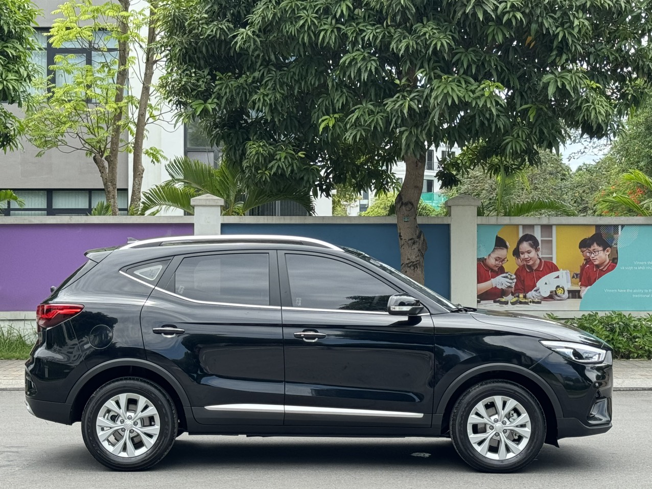 Nhằm nhấn mạnh chiều dài miên man hơn 4,3 m của MG ZS 2023 đồng thời nhấn mạnh vẻ đẹp hiện đại, trẻ trung, hãng xe Trung Quốc đã khéo léo trau chuốt một đường gân chạy dài từ cụm đèn pha đến tay nắm cửa sau, và một đường nối ngắn xuống cụm đèn hậu. Trong khi đó, phần ốp hông của chiếc SUV hạng B cũng được khoét nhẹ đầy tinh tế đi cùng ốp bậc lên xuống màu bạc.
