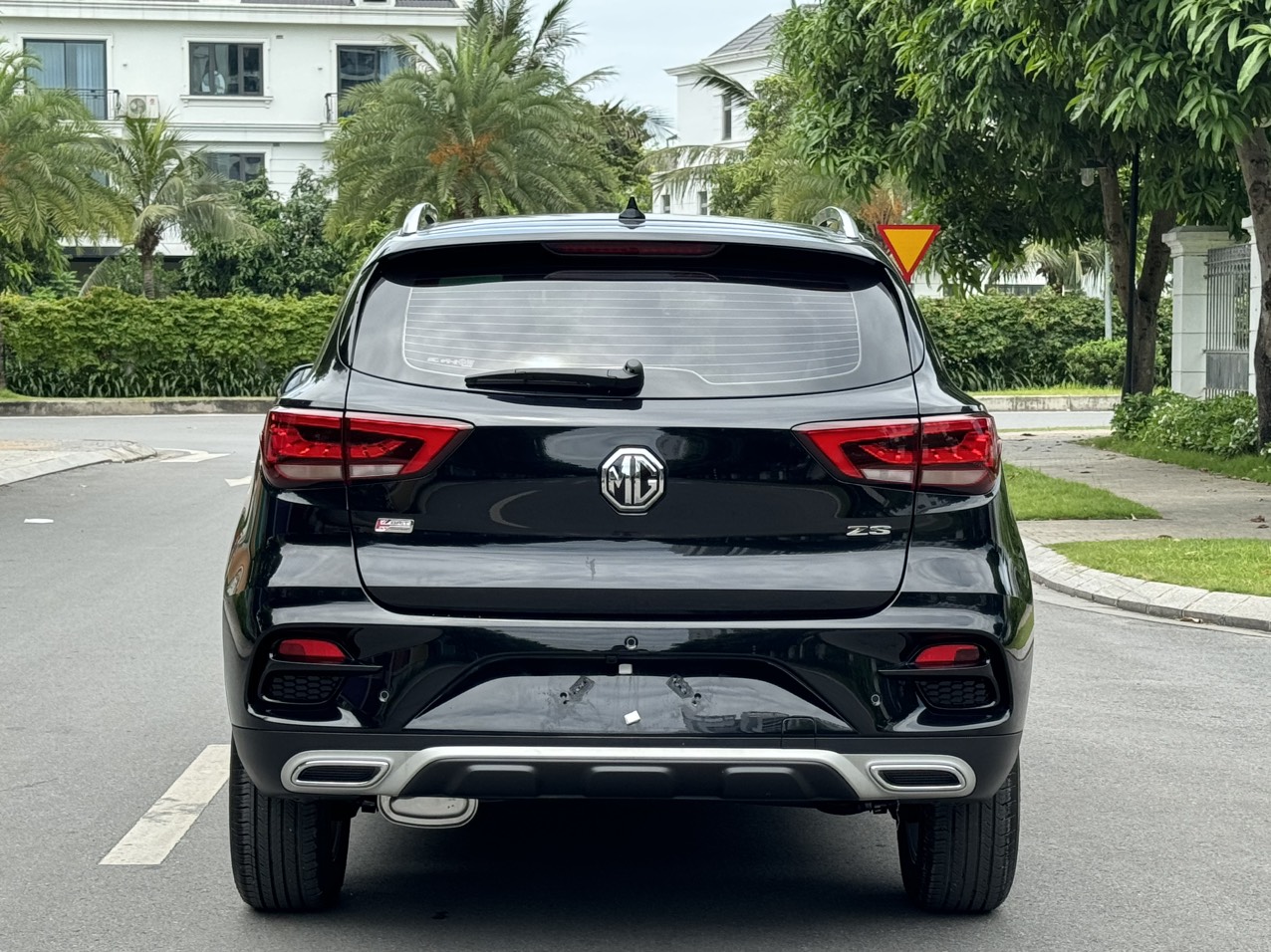 Đánh giá MG ZS 2023 ở phía sau, đuôi xe của chiếc SUV hạng B trông khá hầm hố và mạnh mẽ với hai hốc đèn sương mù khoét sâu cùng ống xả kép mạ chrome bọc trong cản sau màu bạc cứng cáp.