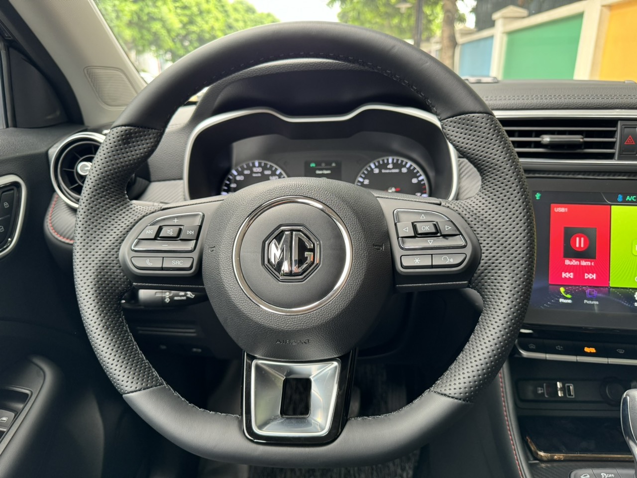 MG ZS 2023 được trang bị vô lăng 3 chấu bọc da có đáy vát phẳng kiểu D-Cut thể thao, tích hợp đầy đủ các phím bấm điều chỉnh âm thanh, hệ thống giải trí, đàm thoại rảnh tay, menu bảng đồng hồ,… Vô lăng cũng được trợ lực điện mang lại cảm giác cầm lái nhẹ nhàng ở dải tốc độ thấp.
