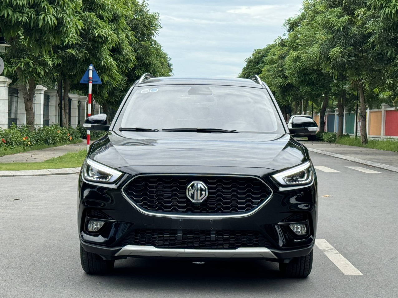 Nhìn từ phía trực diện, đầu xe MG ZS 2023 dễ khiến người dùng nhầm lẫn với các dòng xe nhà Mazda bởi cụm lưới tản nhiệt hình lục giác sơn đen bóng quen thuộc, đi kèm họa tiết trang trí dạng tổ ong bên trong đẹp mắt. Logo MG nổi bật được bố trí bề thế ở trung tâm. Phần nắp capo hiện diện 2 đường gân nổi chuốt thẳng về hai góc trên của lưới tản nhiệt, nhấn mạnh vẻ cứng cáp.