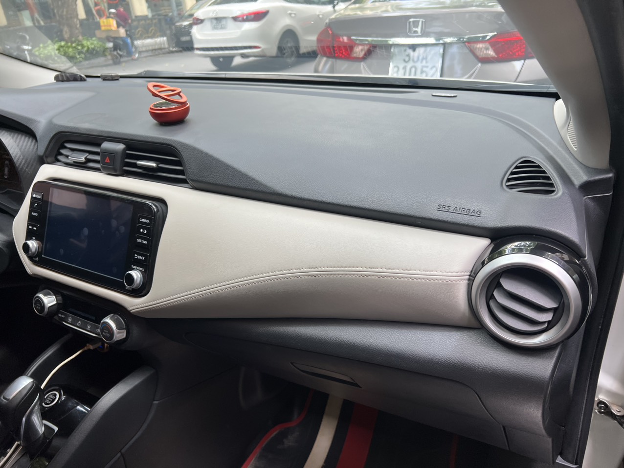 Nhìn chung vật liệu chủ đạo được sử dụng trên khoang lái của Almera 2022 vẫn là nhựa. Tuy nhiên nhờ cách phối màu ấn tượng giữa tông đen với giả da màu trắng nên tổng thể bảng táp lô vẫn rất sang trọng và nổi bật.