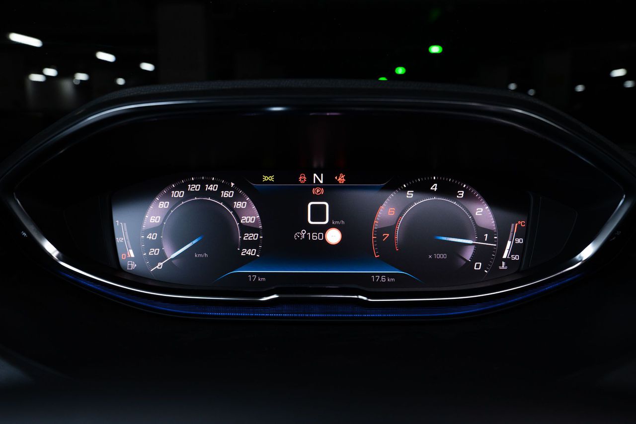 Đặt ngay sau vô lăng là cụm đồng hồ tốc độ dạng full-LCD cỡ lớn quen thuộc của Peugeot. Màn hình này có kích thước 12.3” và là trang bị tiêu chuẩn trên tất cả các phiên bản của 5008 2022.