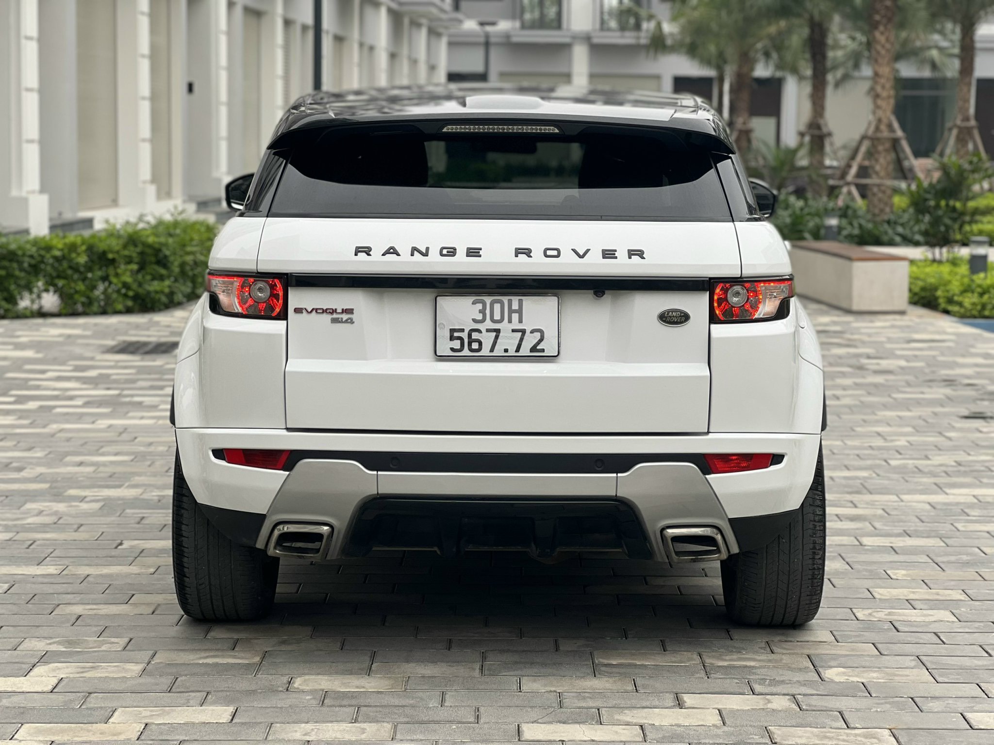 Thân xe sở hữu những đường cong mang tính khí động học cao nhưng vẫn giữ những nét đặc trưng nhất của hãng. Đầu xe Evoque nổi bật với cặp “mắt hí” liền mạch với 2 nan lưới tản nhiệt dạng tổ ong. Hệ thống đèn pha bi-xenon cho phép chuyển hướng theo góc lái giúp tài xế lái xe an toàn hơn ở những khúc đường cua khi tối trời. Xe sở hữu bộ la-zăng hợp kim 20 incbh đi cùng lốp xe có kích thước 245/45 R20. Cụm đuôi xe ấn tượng với các chi tiết như cản sau cơ bắp, cụm ống xả kép thể thao, cánh gió kích thước lớn được tích hợp đèn phanh trên cao.