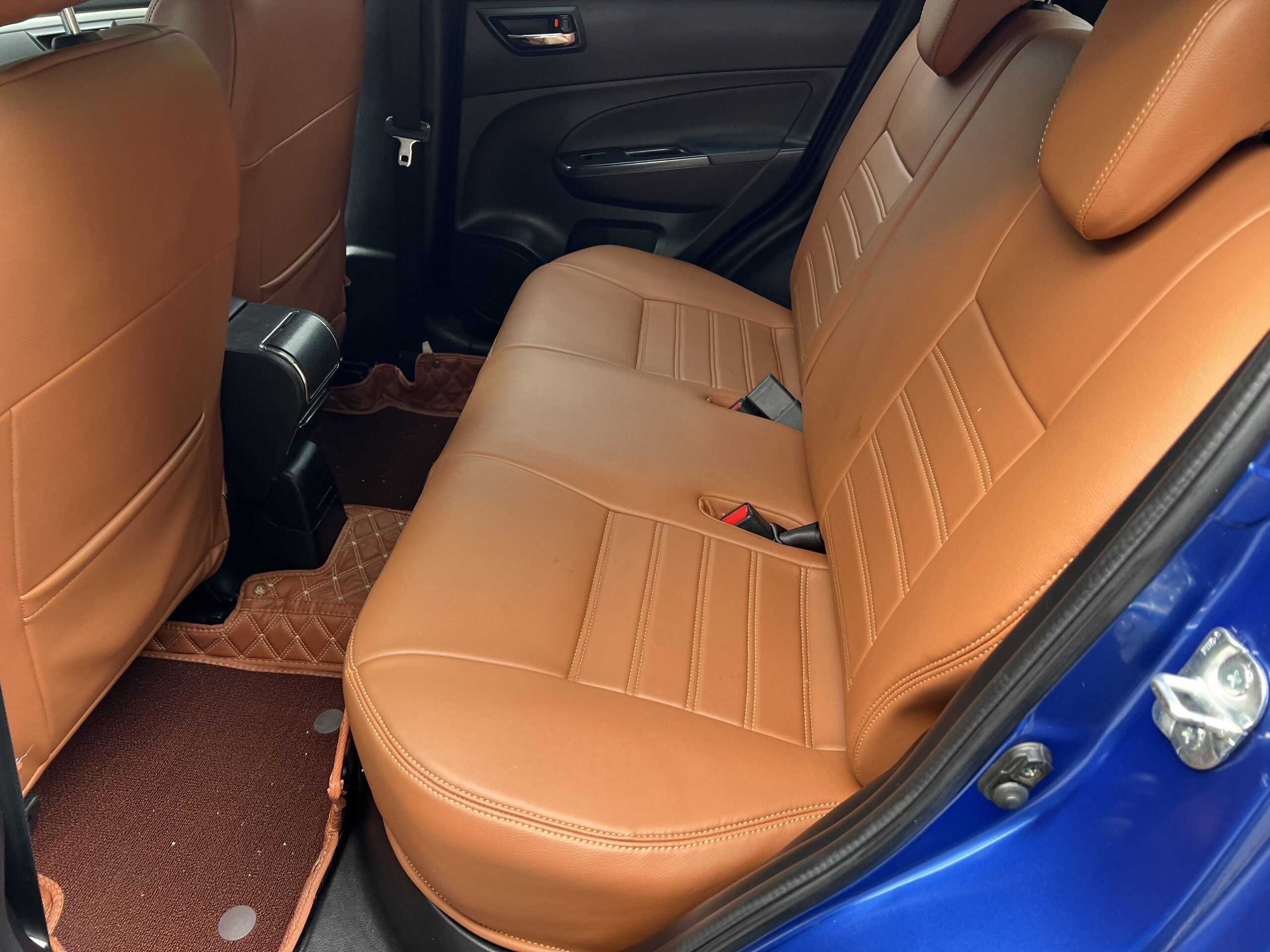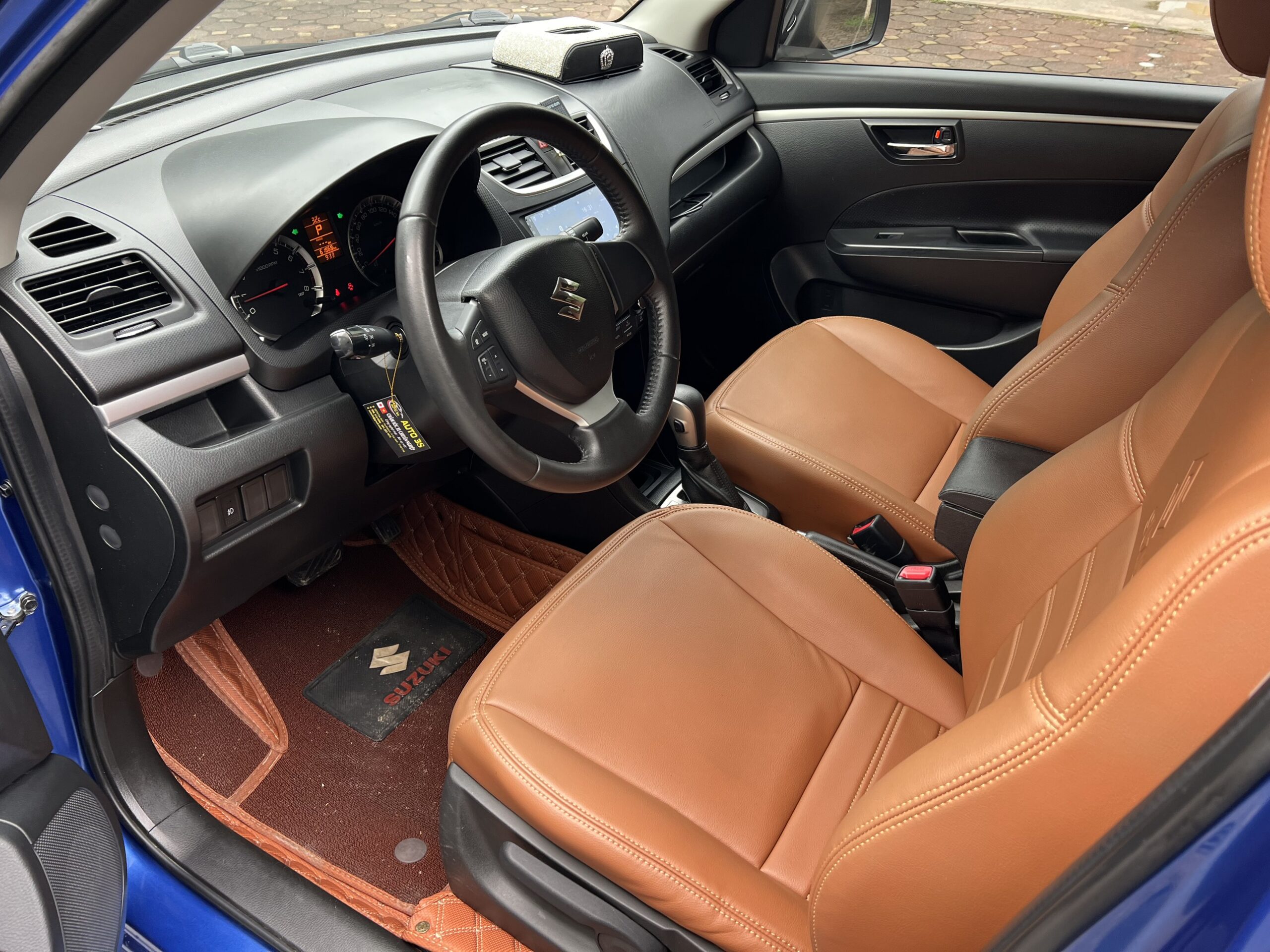 Bên trong cabin xe, Suzuki Swift được trang bị ghế xe chất liệu nỉ tối màu, hệ thống giải trí CD/MP3/AM/FM, cổng kết nối USB giúp kết nối thiết bị đa phương tiện bên ngoài, hệ thống âm thanh 4 loa, hệ thống điều hòa tự động, nút bấm khởi động và chìa khóa thông minh.