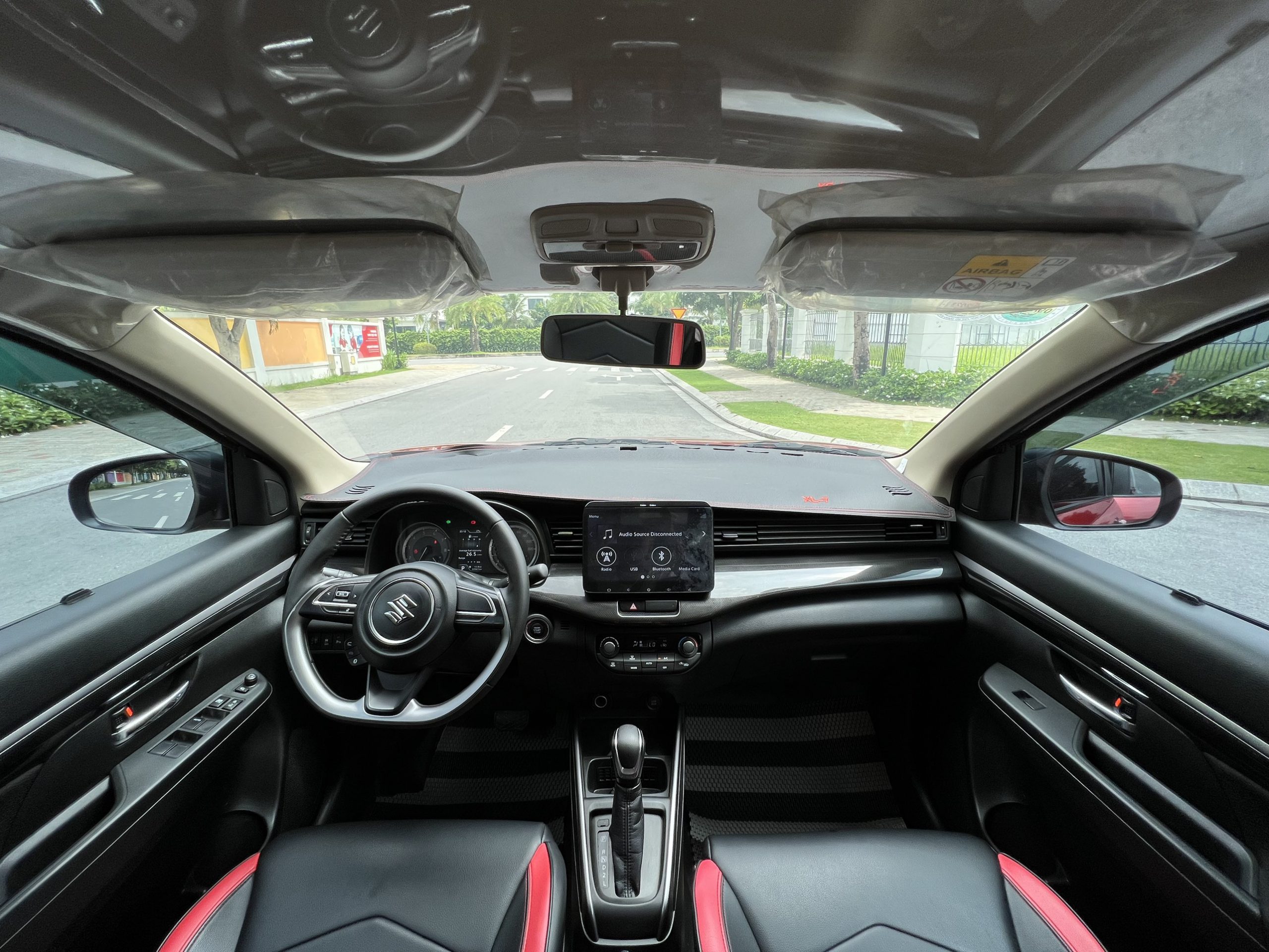 Điểm khác biệt duy nhất trong khoang lái của XL7 so với Ertiga là phần táp lô xe được ốp carbon thay vì dạng vân gỗ. Tông màu chủ đạo là màu đen. Các chi tiết nút bấm, chỉnh điều hòa của Suzuki XL7 2022 bố trí gọn gàng vừa tầm tay người lái. Cột A nhỏ, không ảnh hưởng đến tầm quan sát.