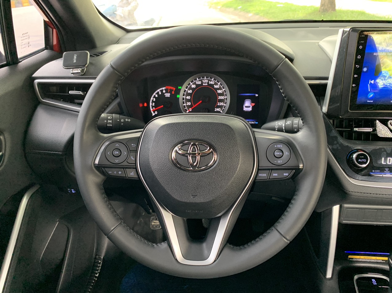 Do được trang bị vô lăng trợ lực điện, Toyota Corolla Cross cho cảm giác lái nhẹ nhàng khi đi trong đường phố nhưng vẫn rất đầm chắc trên những cung đường xa lộ. Một điểm cộng nữa là số vòng quay vô lăng từ khóa trái sang khóa phải của xe chỉ ở mức 2,7 vòng, điều này giúp cho xe dễ dàng di chuyển, luồn lách ở các ngã rẽ trên các cung đường phố hoặc các đoạn đường có nhiều khúc cua.
