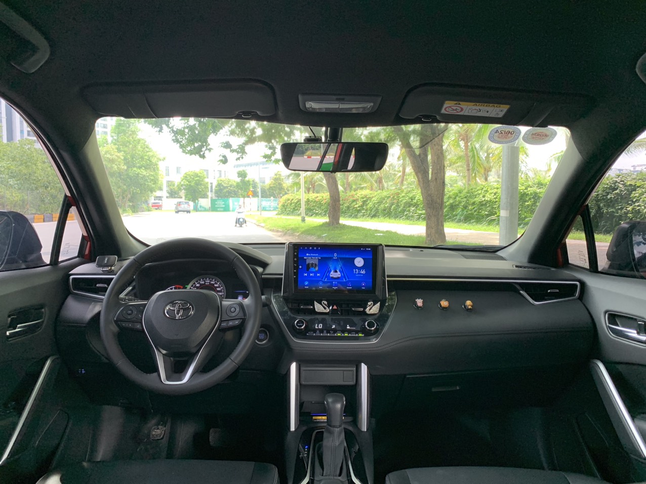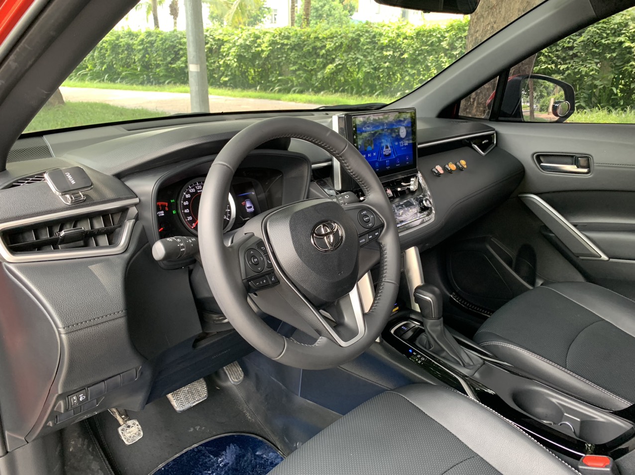 Khoang lái không tạo nhiều ngạc nhiên như ngoại thất mà được bố trí quen thuộc như các dòng xe khác của Toyota. Tuy nhiên, một điểm cộng là nội thất của Corolla Cross được bọc da ở khu vực bảng táp-lô hay ở cánh cửa.