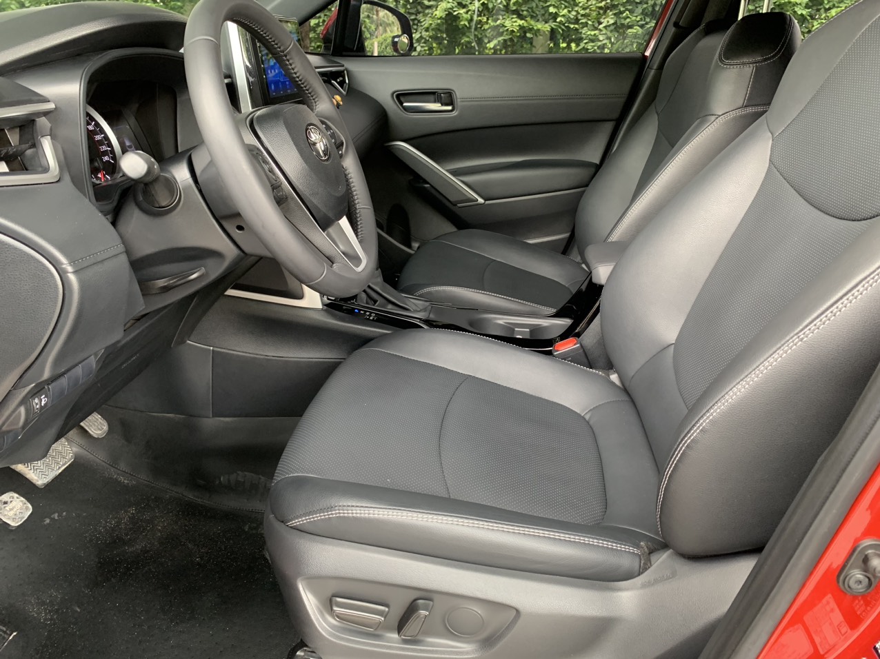 Cả ba phiên bản của Corolla Cross đều được trang bị ghế bọc da vô cùng sang trọng. Hàng ghế bên trên được thiết kế ôm hơn, tăng thêm sự thoải mái cho người lái và hành khách. Ghế lái có thể chỉnh điện 8 hướng, ghế hành khách phía trước thì chỉnh cơ 4 hướng.