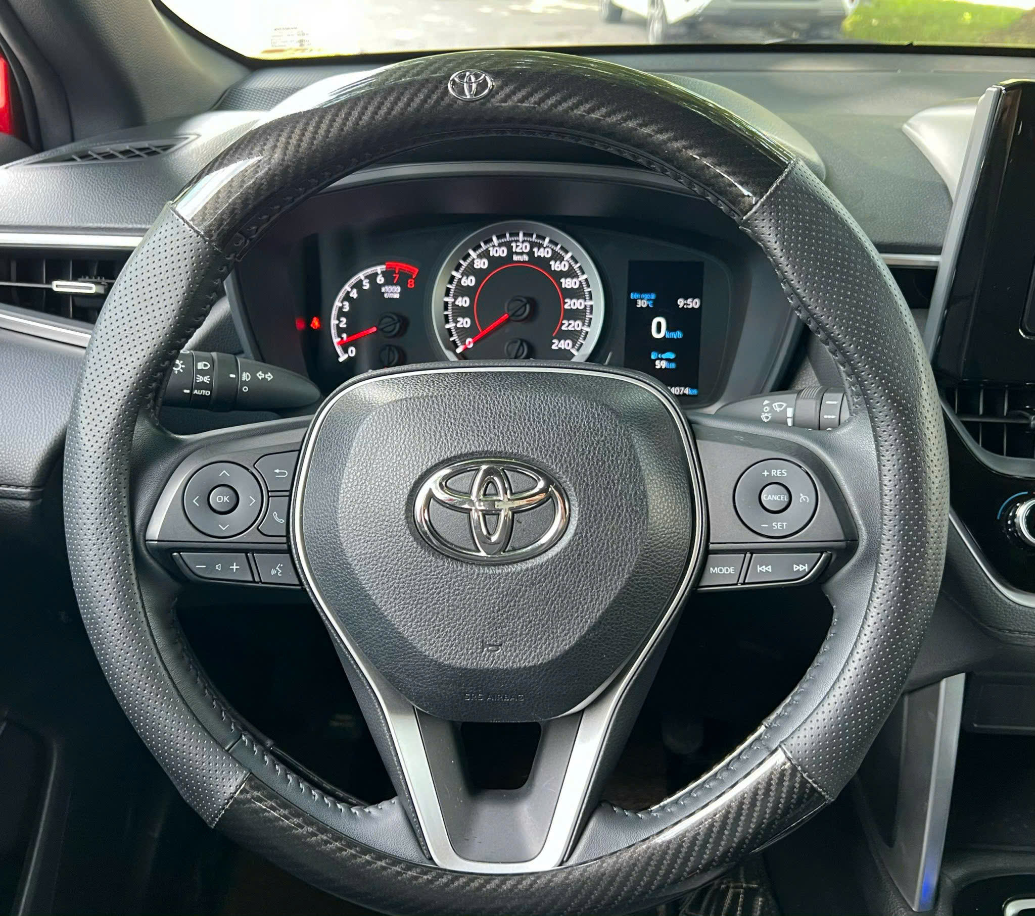Xe được trang bị vô lăng 3 chấu bọc da, trợ lực điện có thể điều chỉnh 4 hướng với đầy đủ hệ thống nút bấm điều chỉnh menu, hệ thống loa, đàm thoại rảnh tay, Cruise Control… Bảng đồng hồ được thiết kế dạng kỹ thuật số vô cùng đẹp mắt. Phía dưới vô lăng và bảng đồng hồ là nút khởi động Start/Stop sử dụng cùng chìa khóa thông minh.