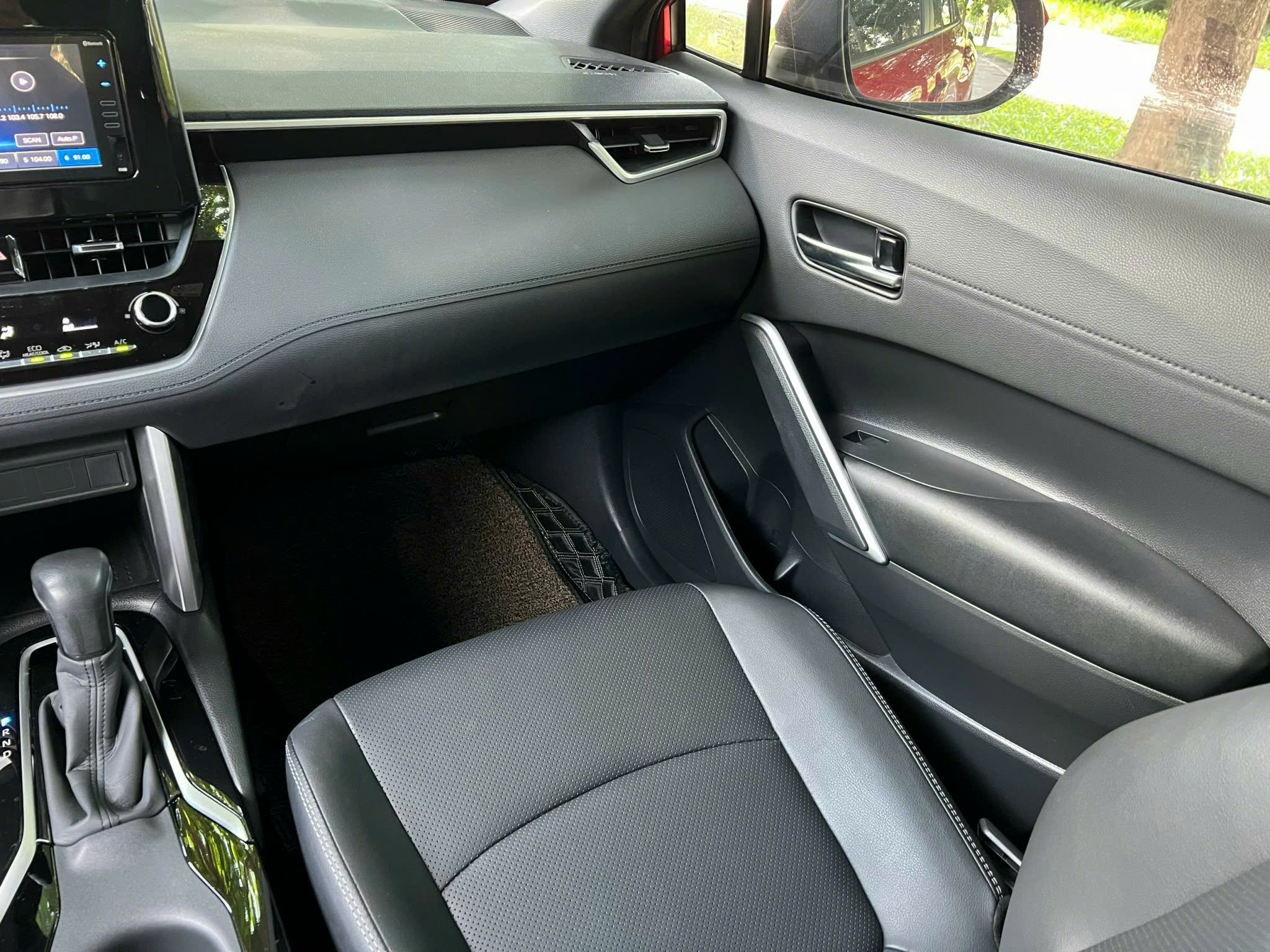 Khoang lái không tạo nhiều ngạc nhiên như ngoại thất mà được bố trí quen thuộc như các dòng xe khác của Toyota. Tuy nhiên, một điểm cộng là nội thất của Corolla Cross được bọc da ở khu vực bảng táp-lô hay ở cánh cửa.