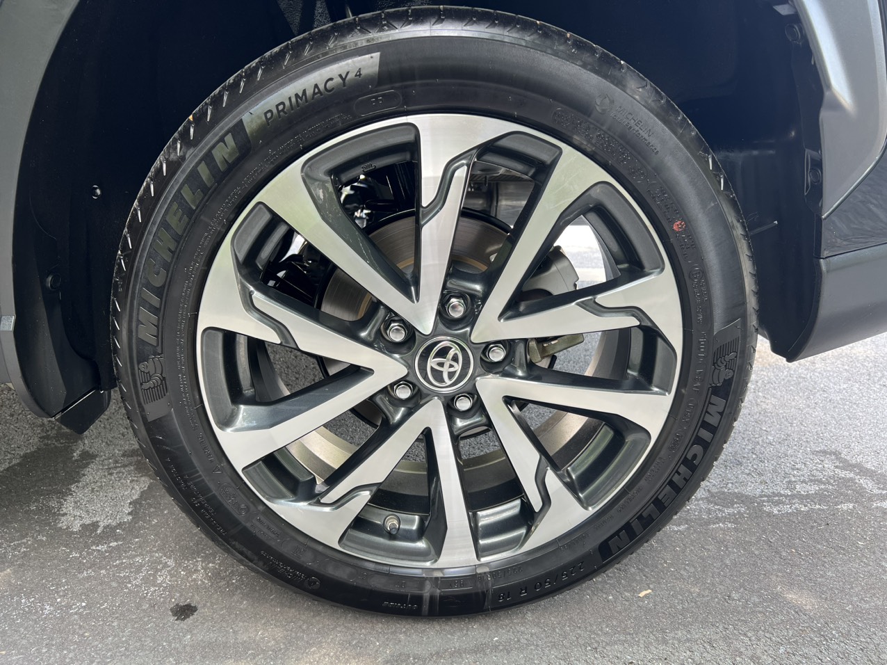 Phần thân xe Toyota Cross bản V là sự nổi bật của bộ mâm hợp kim 2 tông màu kích thước 18 inch, cùng bộ lốp hàng hiệu Michelin 225/50R18. Bốn hộc bánh xe được ốp nhựa đen nhám tạo cảm giác cơ bắp hơn cho mẫu Crossover mới của Toyota.