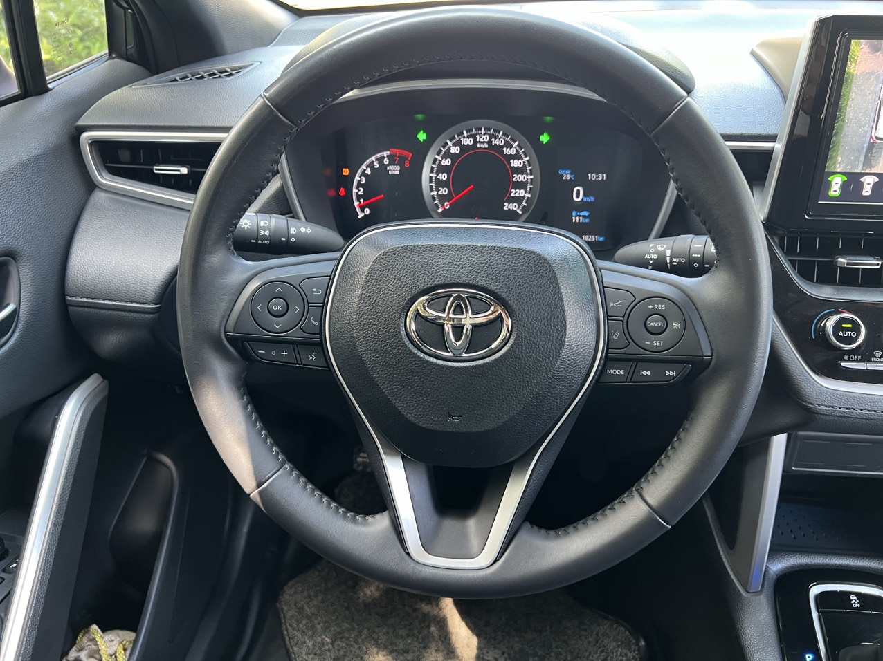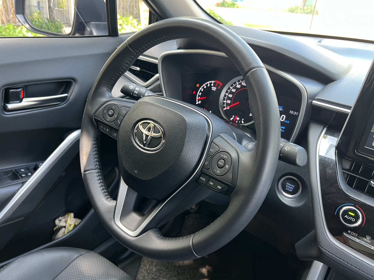 Toyota Cross 1.8V 2022 được trang bị vô lăng 3 chấu bọc da hiện đại và tích hợp thêm các phím bấm chức năng điều chỉnh âm thanh, đàm thoại rảnh tay giúp người lái dễ dàng thao tác trong quá trình điều khiển xe.