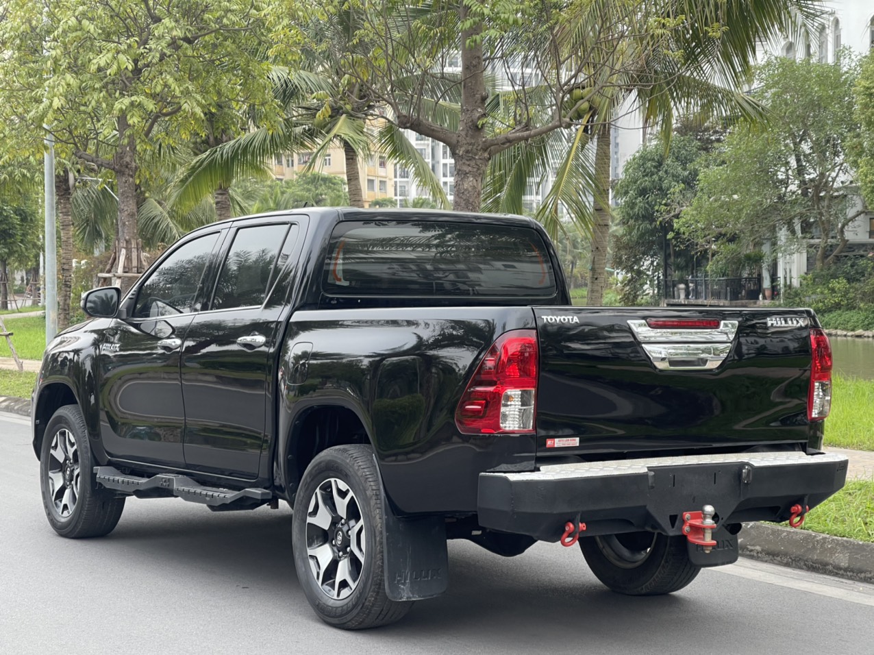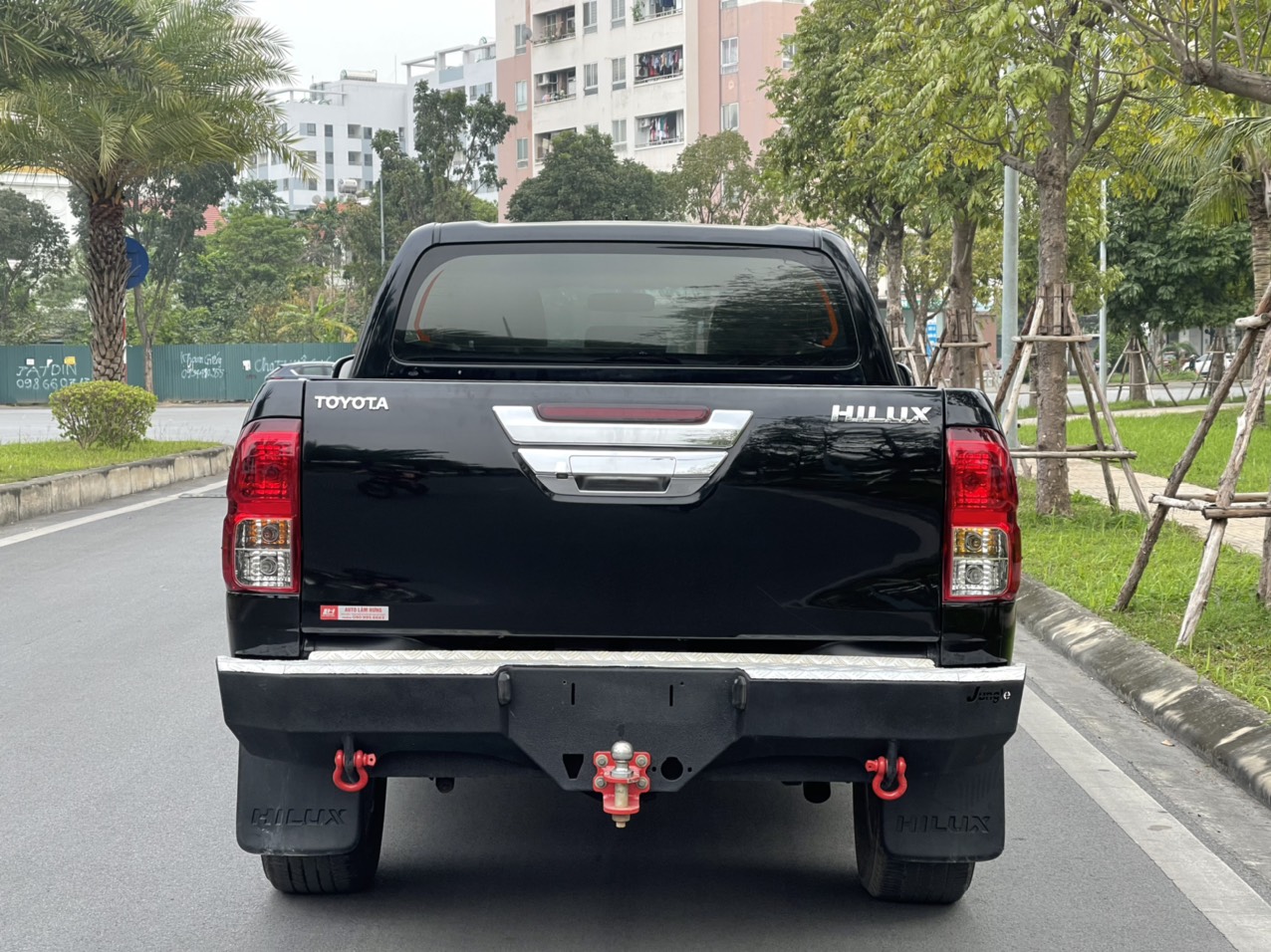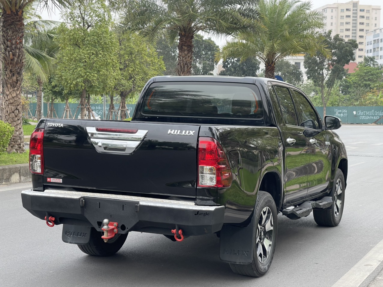 Đuôi xe Toyota Hilux vẫn giữ thiết kế xe bán tải truyền thống với cụm đèn hậu halogen 2 tầng đứng phía sau. Điểm khác biệt phía đuôi xe các phiên bản Hilux là cản sau. Phiên bản 2.8 G cao cấp có cản sau mạ chrome nổi bật. Trên cản sau cũng thiết kế bậc lên xuống tiện dụng, đồng thời tích hợp đèn phanh thứ ba ngày chắn thùng hàng, không bị khuất nếu người dùng cần ngắn phụ kiện nắp thùng cao.
