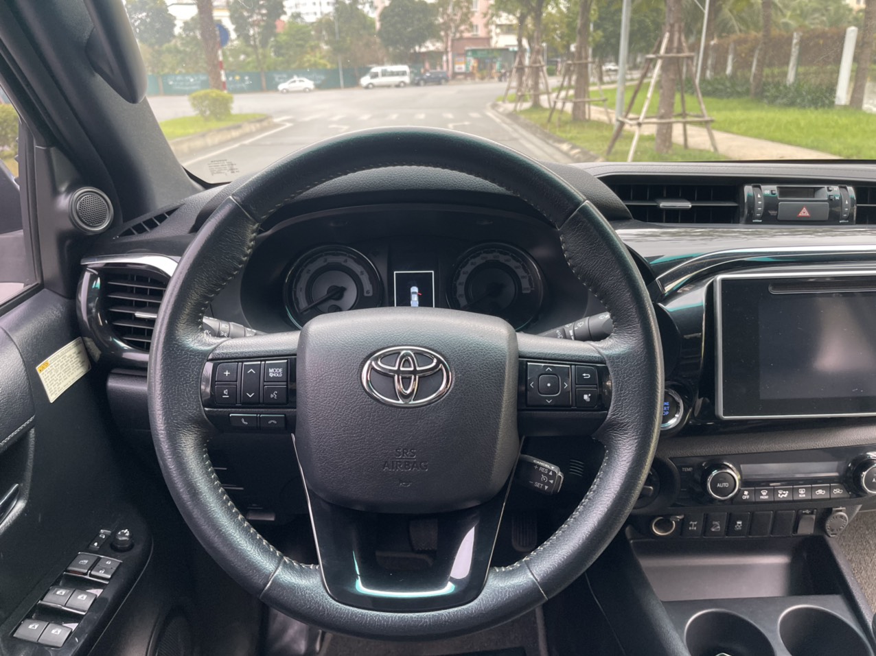 Cụm vô lăng Toyota Hilux có thiết kế 3 chấu hiện đại và thể thao. Vô lăng bọc da, điều chỉnh 4 hướng cùng như có thêm nút điều khiển màn hình đa thông tin, tích hợp điều khiển âm thanh và đàm thoại rảnh tay, tích hợp thêm điều khiển hành trình cruise control.