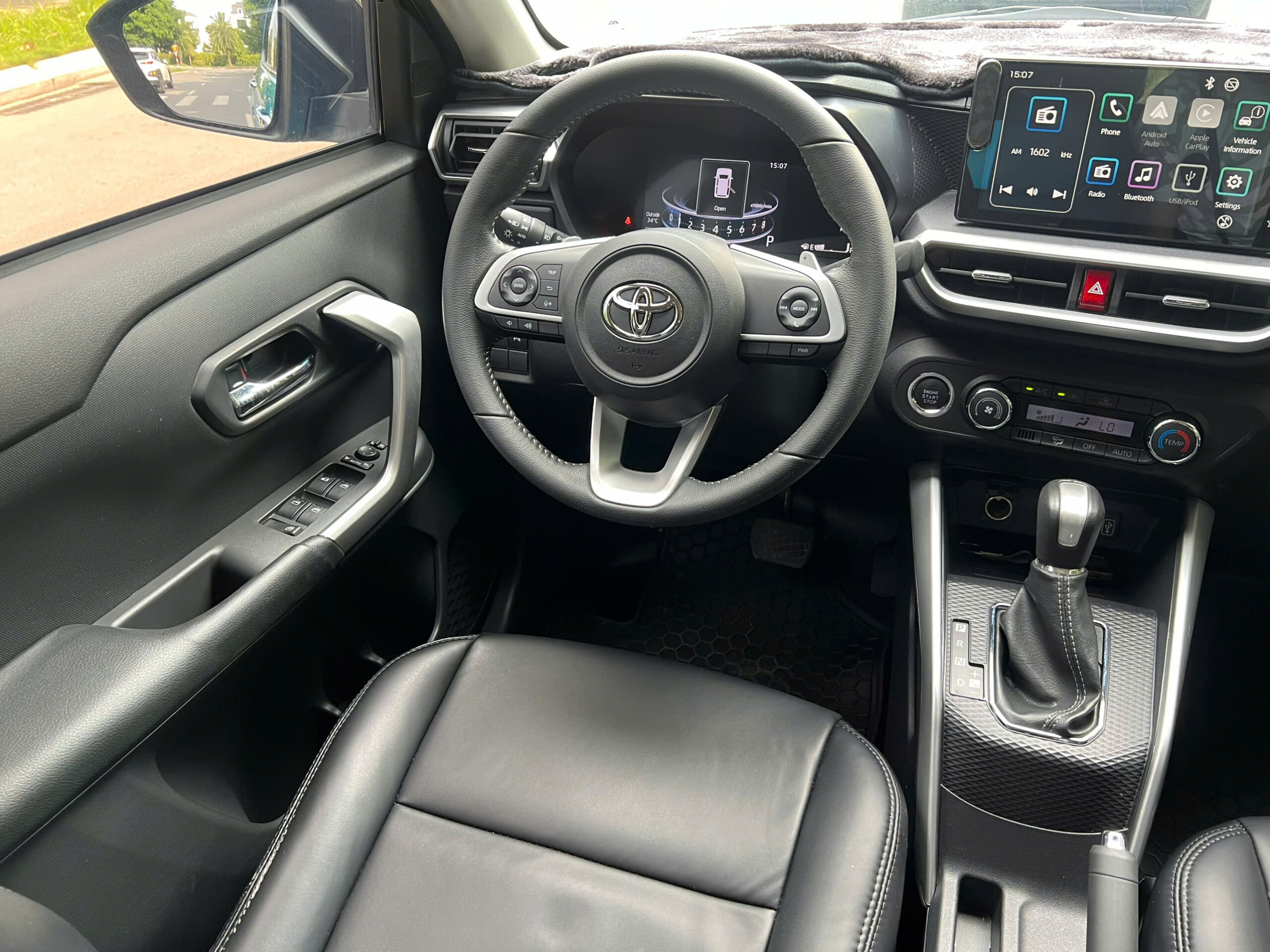 Vô lăng Toyota Raize 2022 dạng 3 chấu dạng tròn chứ không sử dụng kiểu D-cut và bọc da và viền chỉ khâu màu trắng nhưng nổi bật lại được trang bị lẫy số thể thao. Các nút bấm tích hợp gồm đàm thoại rảnh tay, tăng giảm âm lượng, nhưng đáng tiếc là hệ thống điều khiển hành trình cruise control chưa được trang bị.