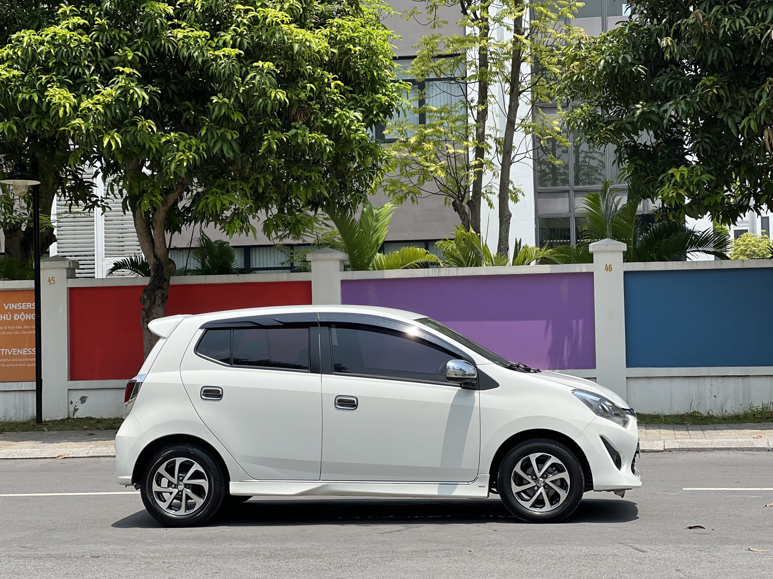 Hầu hết các chi tiết ở hông xe, bao gồm cả gương chiếu hậu ngoài đều được sơn đồng màu ngoại thất, mang đến nét tươi trẻ vốn là chủ đạo trong thiết kế của Wigo, đồng thời cũng hỗ trợ đầy đủ các tính năng thông dụng như chỉnh điện, tích hợp báo rẽ.