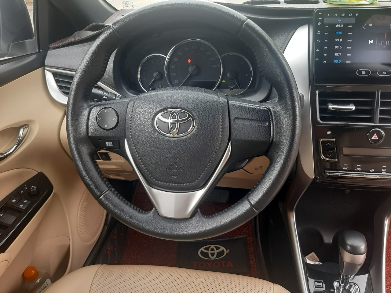 Bên trong khoang nội thất có màn hình giải trí dạng cảm ứng, kích thước 7 inch, cùng hệ thống âm thanh 6 loa. Vô-lăng chỉnh tay 2 hướng, tích hợp các nút bấm điều chỉnh. Yaris 2018 còn có khởi động nút bấm và chìa khóa thông minh.